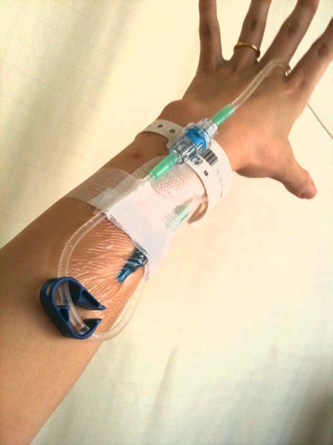 張り返しが来たら、点滴再開出来るように針は差したままという半日が、なんとも中途半端で早く解放してくれーっと思い、夕方先生が念の為明日の朝まで付けておくと言った時には、もうガクーンでした。