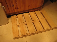 来る前に「お土産なにがいい?」と聞かれたので、遠慮なく切実に欲しかった「すのこ(小)」と「バスマット」をリクエスト。「すのこ(小)」というのは私が願望から作りだしたサイズだったようで、実際には押入れ半間が基本だそう。そこでOさんはなんと!