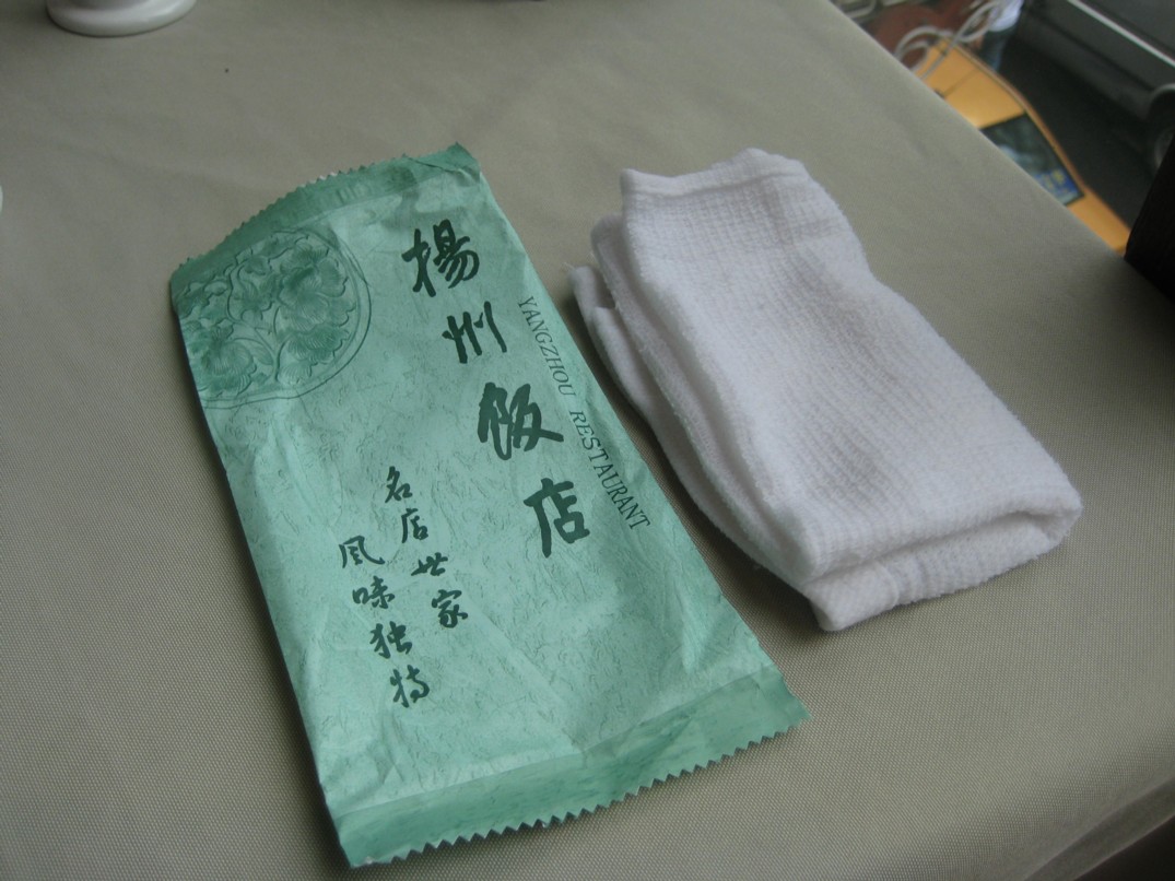 中国のおしぼりは一見ウェットティッシュが入っているようで、薄いタオルのおしぼりが入っているのでちょっと驚きます。(ウェットティッシュのお店もあります。このサイズで。)