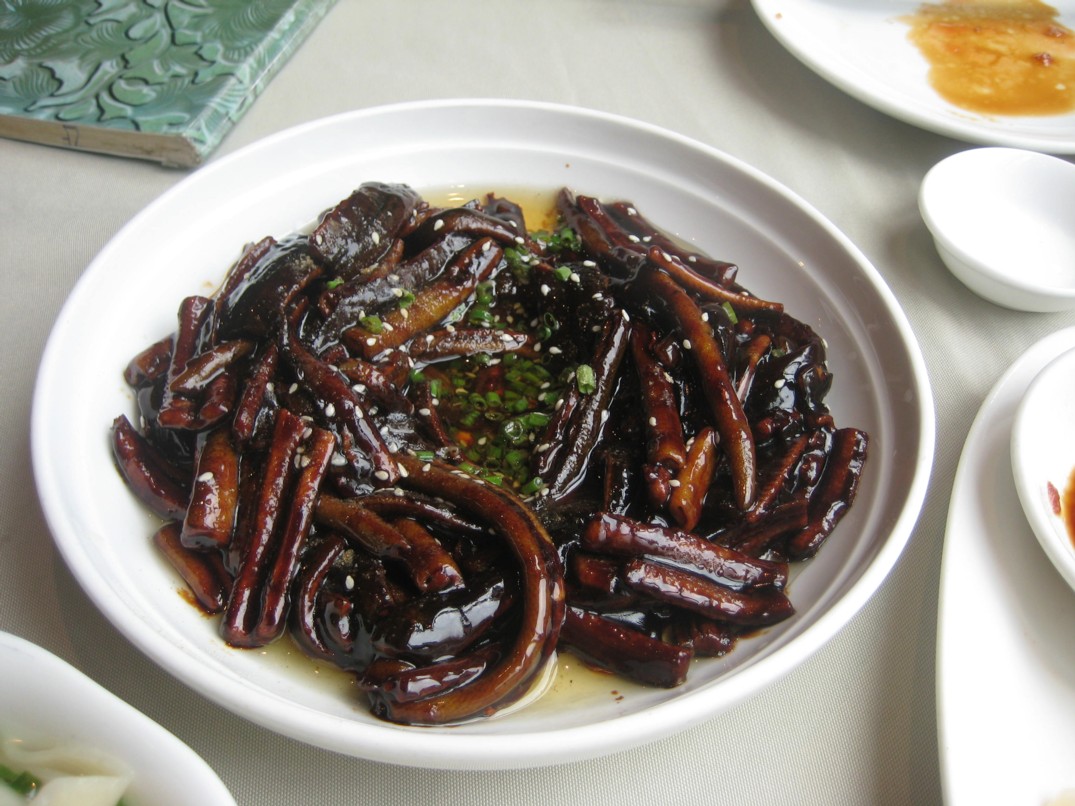 左:お馴染水餃子 右:田鰻を甘しょっぱく炒め煮したもの