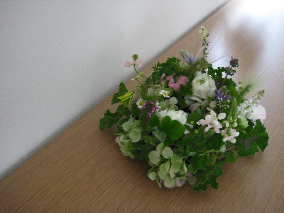 フラワーアレンジメントの教室は他にも行きましたが、なんとなく私にはお花が造花に見えてくるアレンジが多く、いけばなを習った方がいいのかなぁ。なんだか硬いなぁ。と考えあぐねていたのですが、友人のフラワーアレンジの写真を見て「私もこういうのやりたい!」と平井かずみさんのお花の教室を教えてもらいました。
