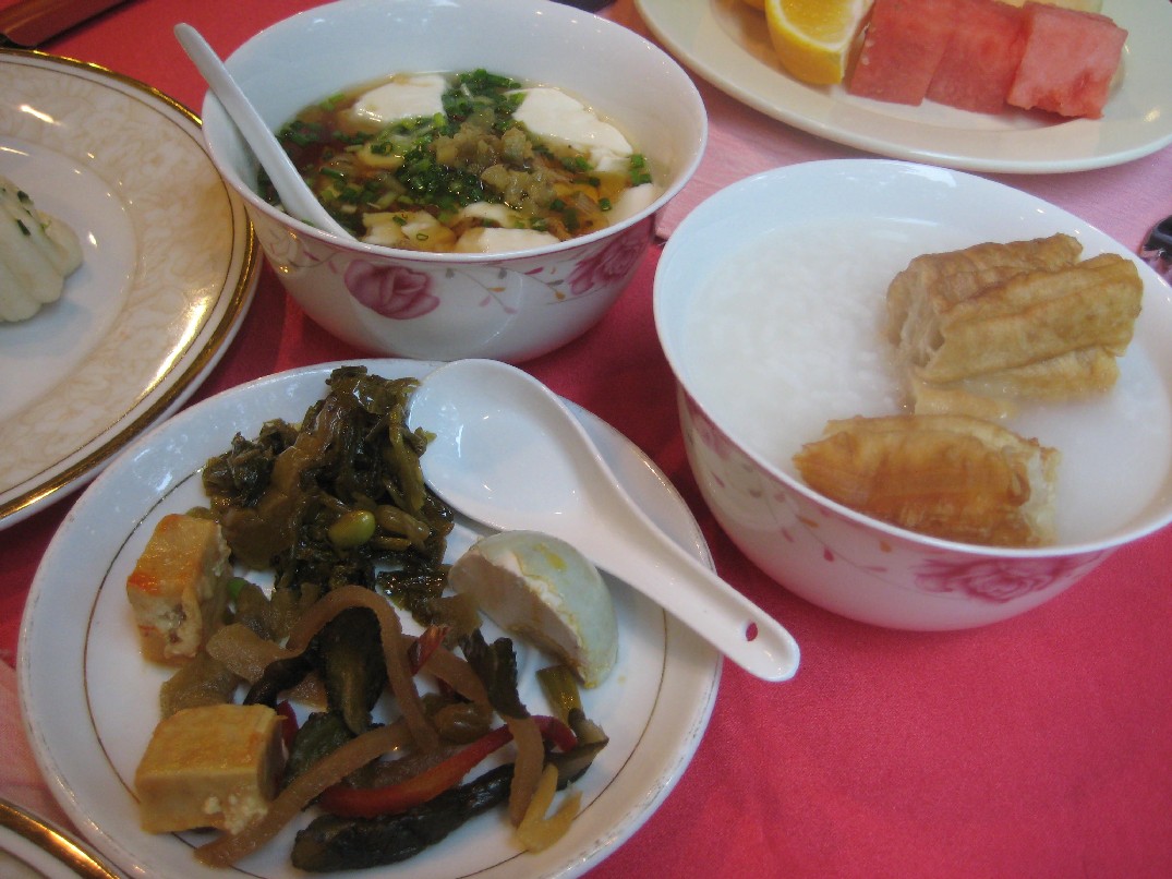 右夫:お粥に温かい豆腐(豆腐花)に色々。魅力的なチョイス!誘惑に負けて私も豆腐花食べました。