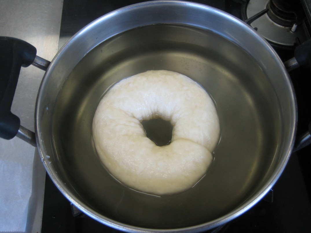 パンを茹でちゃう?溶けちゃわないの?って感じですが、茹でることであのモッチリ食感になるそうです。