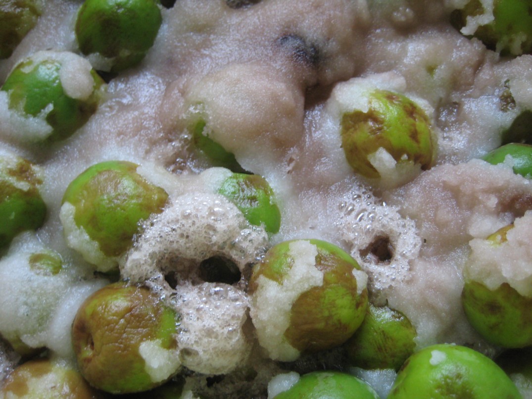 カチカチだった青梅の水分がどんどん出てきて、シワシワになってきました。