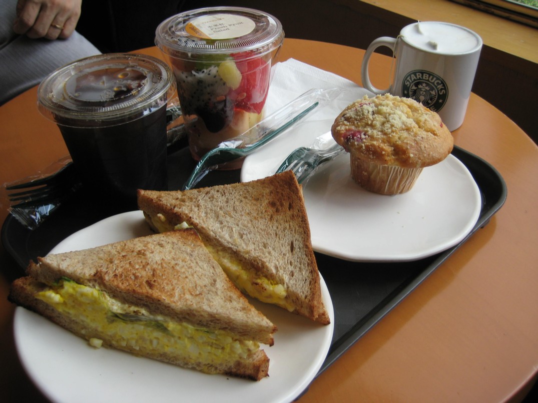 こちらのスーパーは7時半からopenしてます。家から歩いて30分!歩いているうちにやっぱり暑くなって、買物の前にスターバックスで朝食。