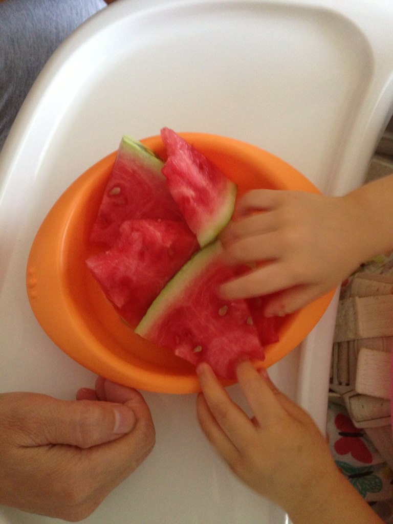 けど、ひとくち食べては次のすいかを繰り返し、ちゃんと全部食べる。
