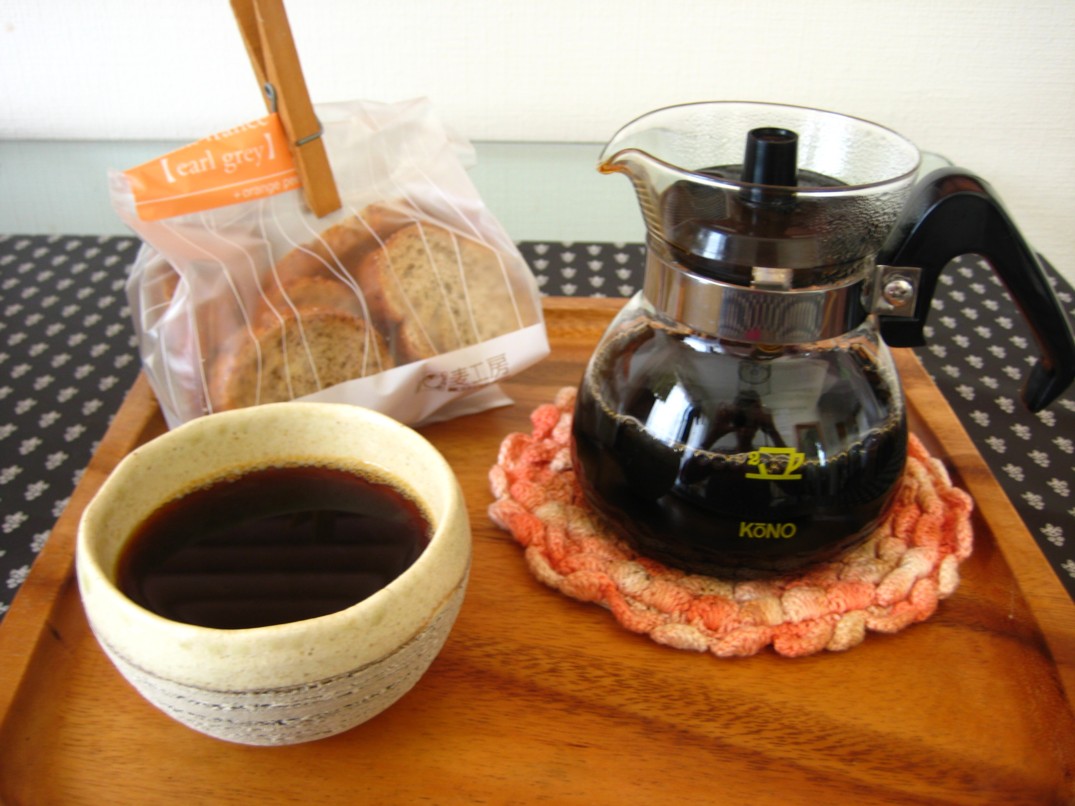 コーヒーの友は友人にもらった麦工房のラスク。アールグレイ+オレンジピール味。やめられないとまらない美味しさだ。