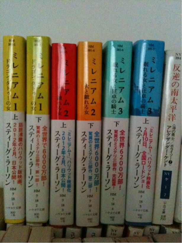 去年入院した時に友達が差し入れしてくれた小説。3部とも上下巻で覚えにくいスェーデン名の登場人物がどっさりなので、なかなか手が出せないでいたけれど、読み出したらどっぷりハマった。