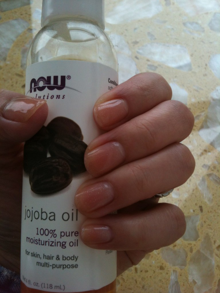 爪を健康にするにはハンドクリームは浸透しないので、何かお気に入りのオイル(私はホホバオイルを使ってます)を目薬の容器のようなものに入れ、指の先端の爪と指の間の中央の溝にポトンとオイルを垂らします。オイルが爪の額縁部分に流れたら、爪周りに擦り込みます。思っているよりべたつきませんが、余ったオイルは手全体にハンドクリームのように馴染ませる。これをしょっちゅうやる。